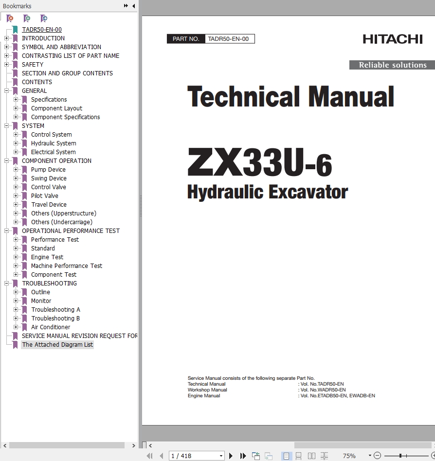 Hitachi ZX33U-6 Technical Manual TADR50-EN-00