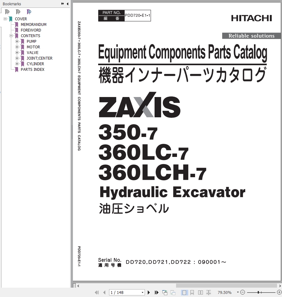 Hitachi ZX350-7 ZX360LC-7 ZX360LCH-7 Parts Catalog PDD720-E1-1