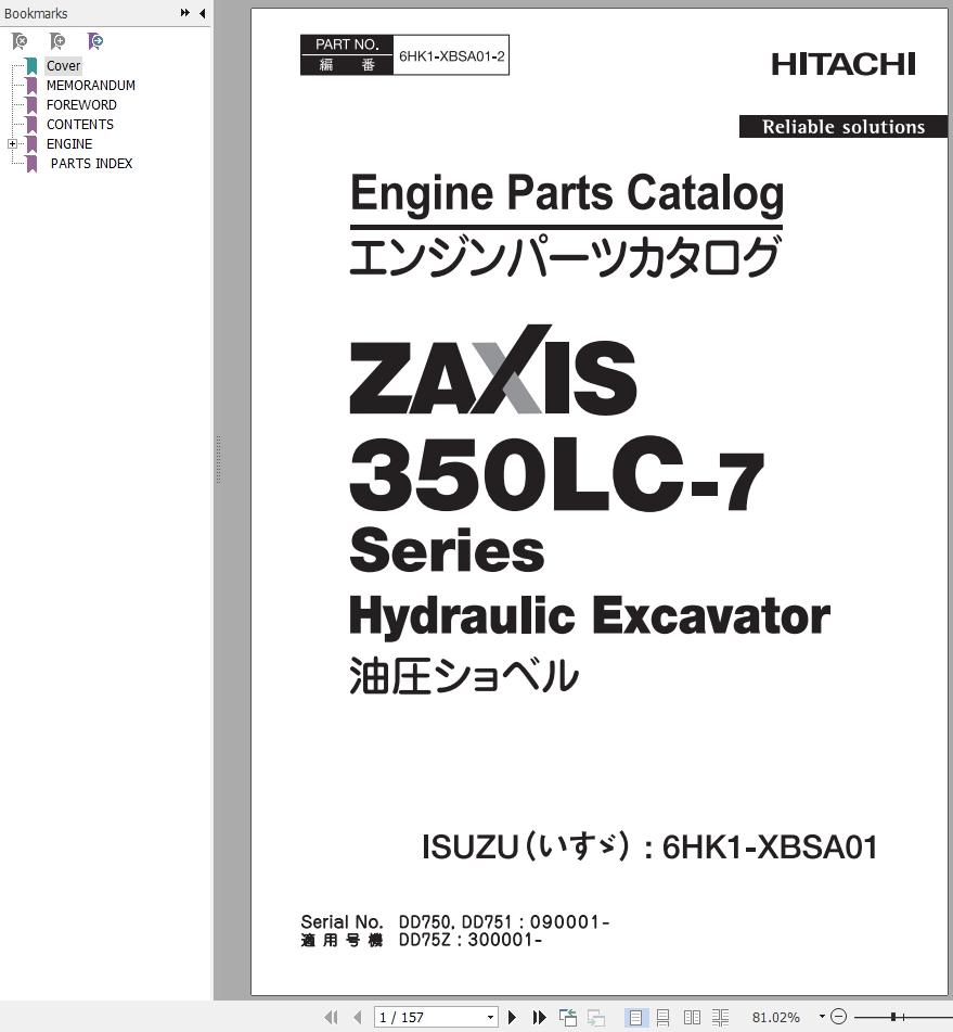 Hitachi ZX350LC-7 Series Engine Parts Catalog 6HK1-XBSA01-2