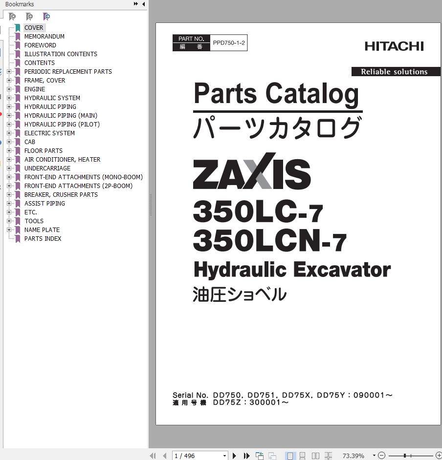 Hitachi ZX350LC-7 ZX350LCN-7 Parts Catalog PDD750-1-2