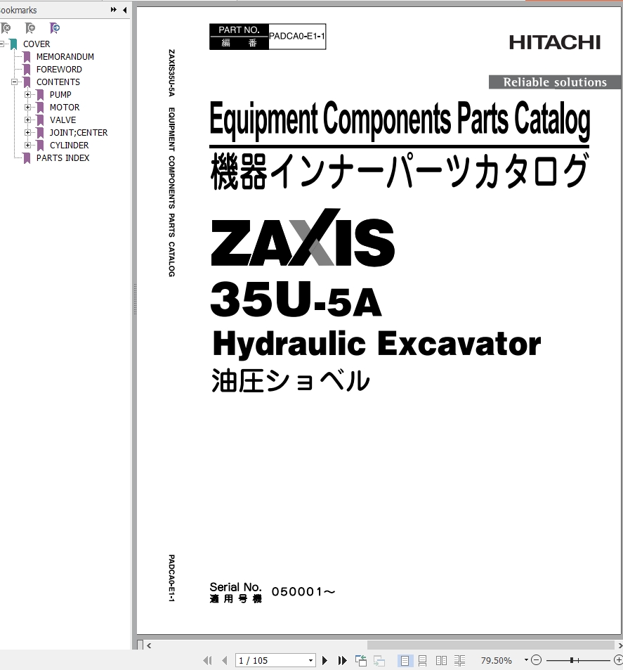 Hitachi ZX35U-5A Parts Catalog PADCA0-E1-1