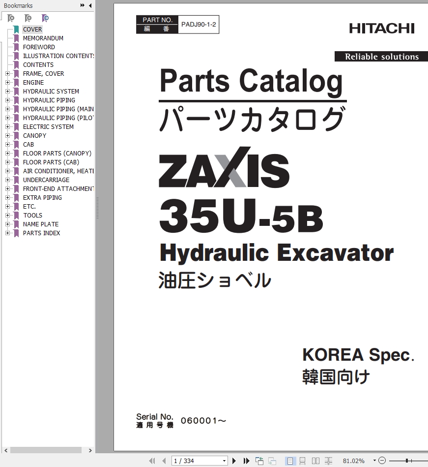 Hitachi ZX35U-5B Parts Catalog PADJA0-E1-1