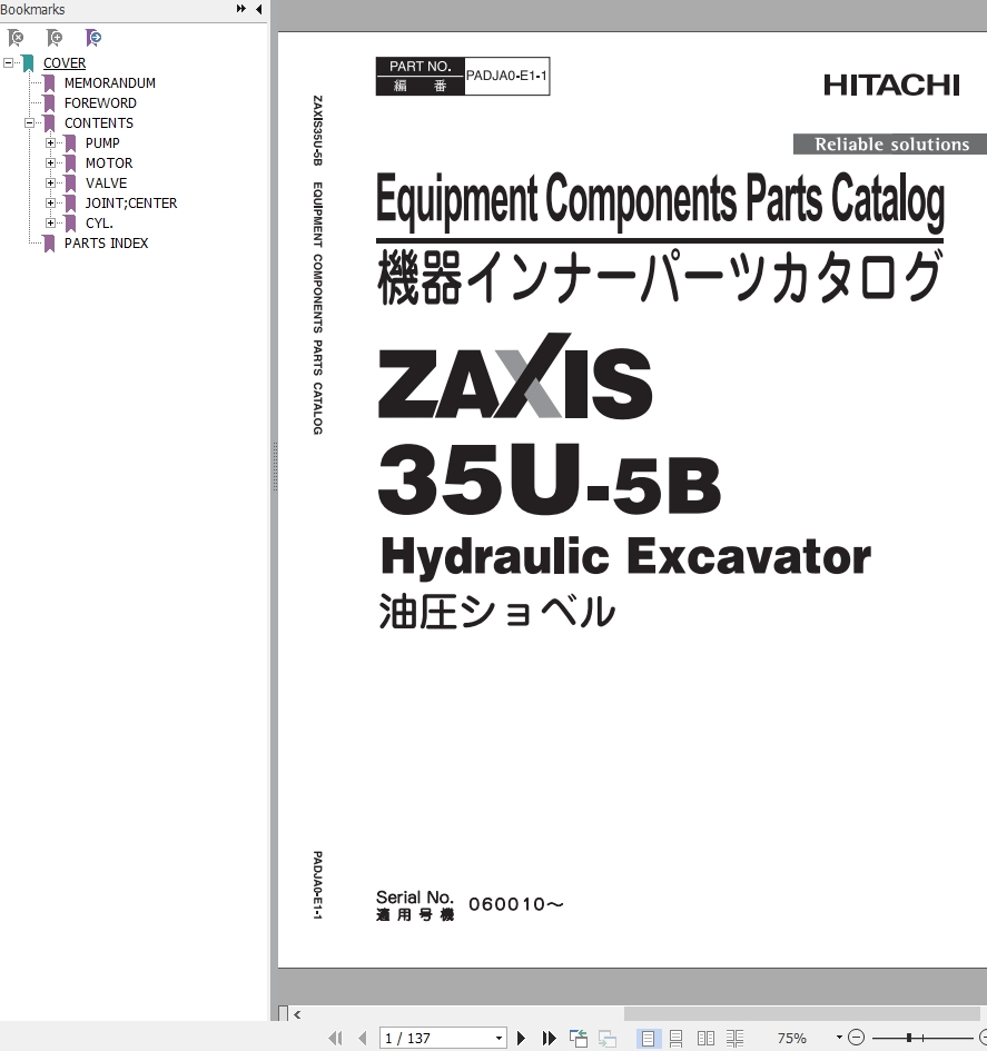 Hitachi ZX35U-5B Parts Catalog PADJA0-E1-1