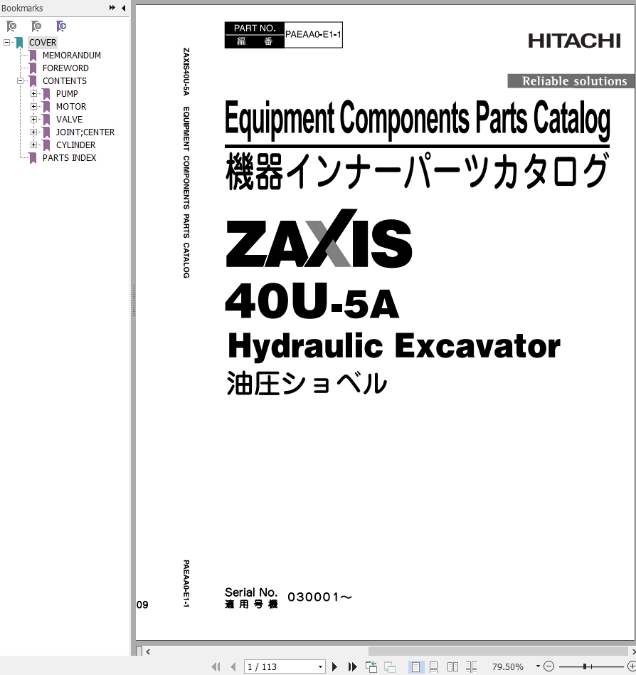 Hitachi ZX40U-5A Parts Catalog PAEAA0-E1-1