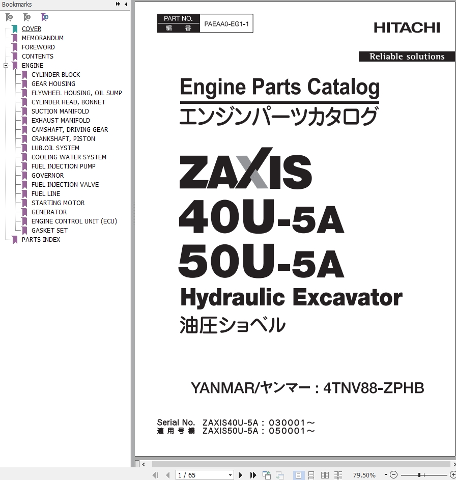 Hitachi ZX40U-5A ZX50U-5A Engine Parts Catalog PAEAA0-EG1-1