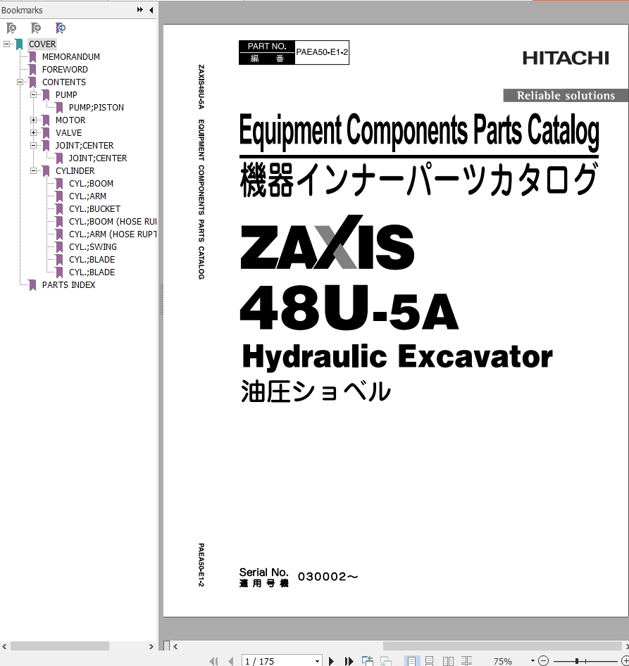 Hitachi ZX48U-5A Parts Catalog PAEA50-E1-2