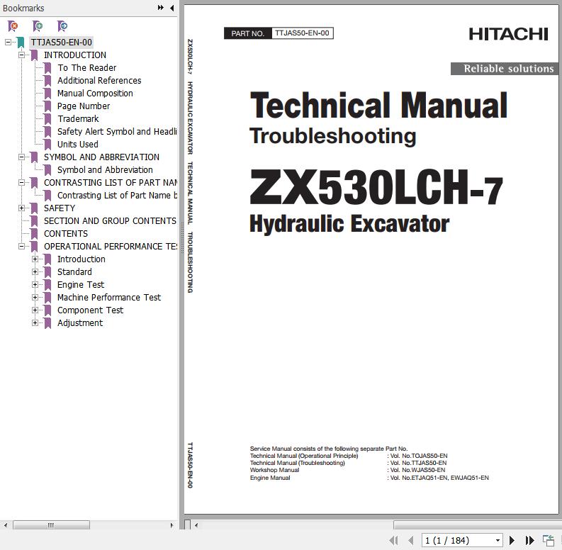 Hitachi ZX530LCH-7 Technical Manual Troubleshooting TTJAS50-EN-00(1)(20200427) 184 Pages