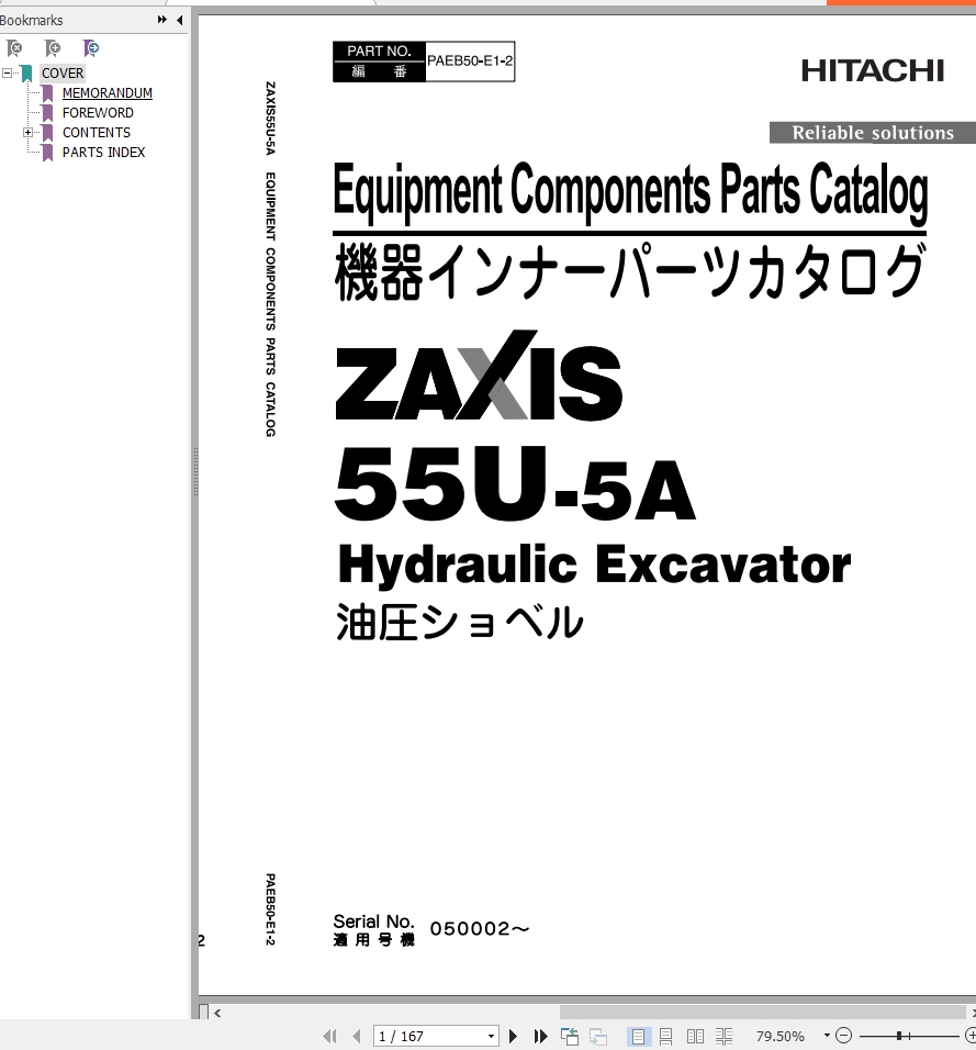 Hitachi ZX55U-5A Parts Catalog PAEB50-E1-2