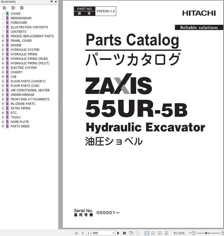 The Bookmarks of Hitachi ZX55UR-5B Hydraulic Excavator Parts Catalog: