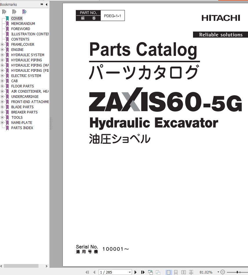 Hitachi ZX60-5G Parts Catalog PDEG-1-1