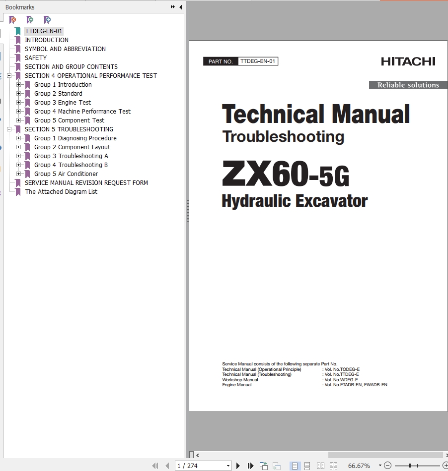 The Bookmarks of Hitachi ZX60-5G Hydraulic Excavator Technical Manual(Troubleshooting):