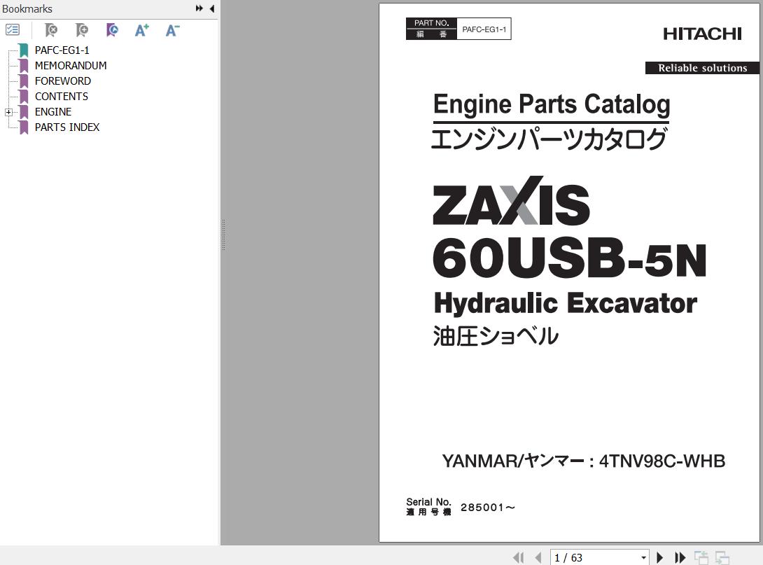 The Bookmarks of Hitachi ZX60USB-5N Yanmar 4TNV98C-WHB Engine Parts Catalog: