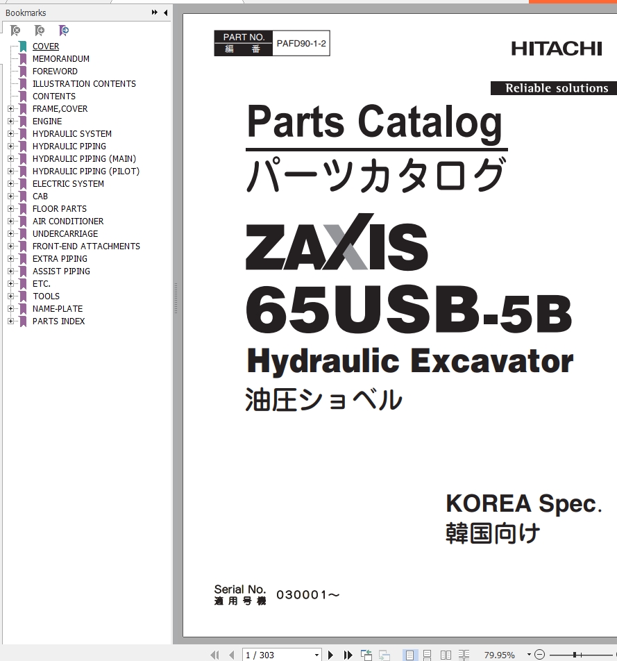 The Bookmarks of Hitachi ZX65USB-5B Hydraulic Excavator Parts Catalog: