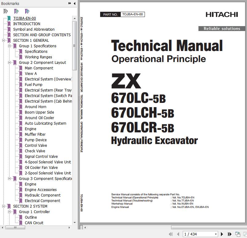 Hitachi ZX670LC-5B ZX670LCH-5B ZX670LCR-5B Technical Manual Operational Principle TOJBA-EN-00(20160226) 434 Pages