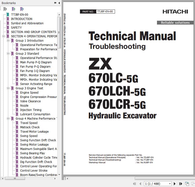 Hitachi ZX670LC-5G ZX670LCH-5G ZX670LCR-5G Technical Manual Troubleshooting TTJBF-EN-00(20130705) 488 Pages