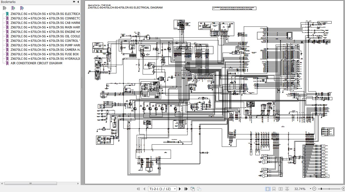 Hitachi ZX670LC-5G ZX670LCH-5G ZX670LCR-5G Electrical & Hydraulic Circuit Diagram TTJBF-EN-00(20160205) 12 Pages