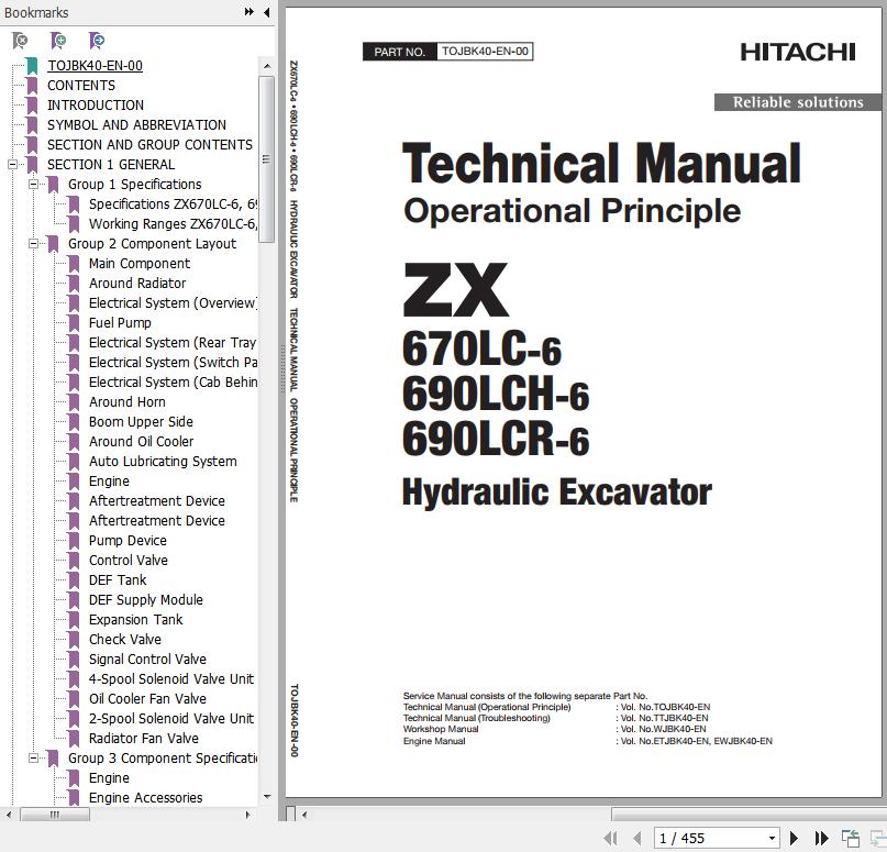 Hitachi ZX670LC-6 ZX690LCH-6 ZX690LCR-6 Technical Manual Troubleshooting TTJBK40-EN-00(20180713) 490 Pages