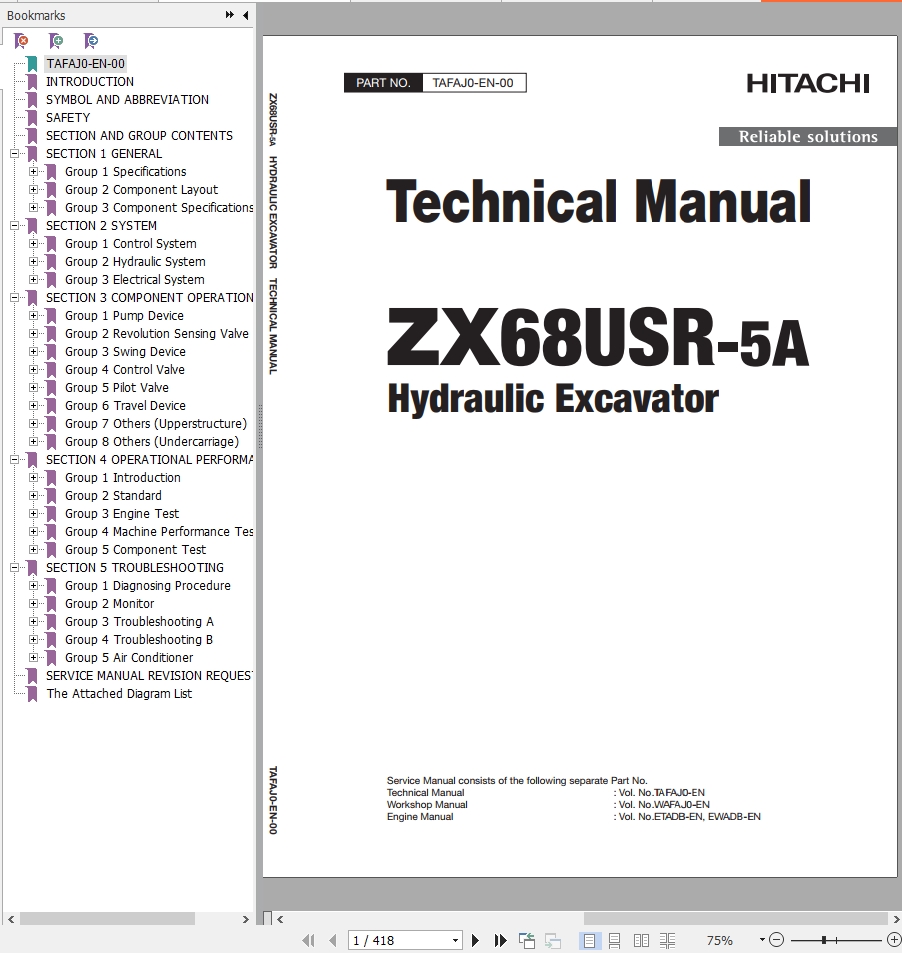 The Bookmarks of Hitachi ZX68USR-5A Hydraulic Excavator Technical Manual: