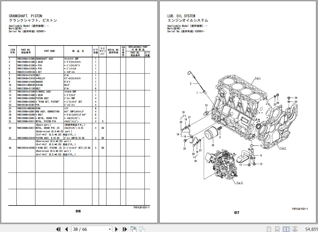 Hitachi ZX68USR-5A Yanmar 4TN94L-ZWHB Engine Parts Catalog PAFAJ0-EG1-1