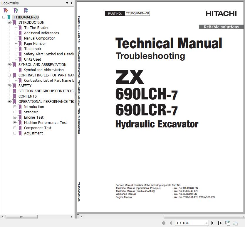 Hitachi ZX690LCH-7 ZX690LCR-7 Technical Manual Troubleshooting TTJBQ40-EN-00(1)(20200214) 184 Pages