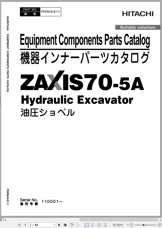 Hitachi ZX70-5A Parts Catalog PDEMJ0-E1-1
