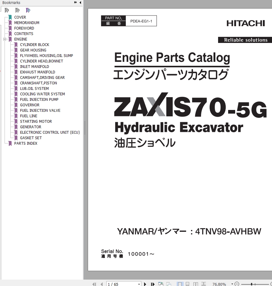 Hitachi ZX70-5G Engine Parts Catalog PDEA-EG1-1