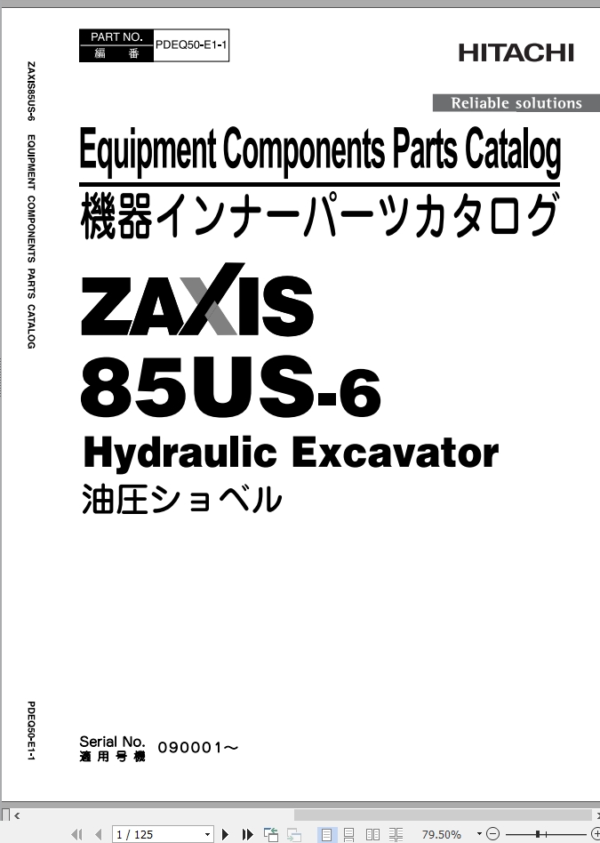 Hitachi ZX85US-6 Parts Catalog PDEQ50-E1-1