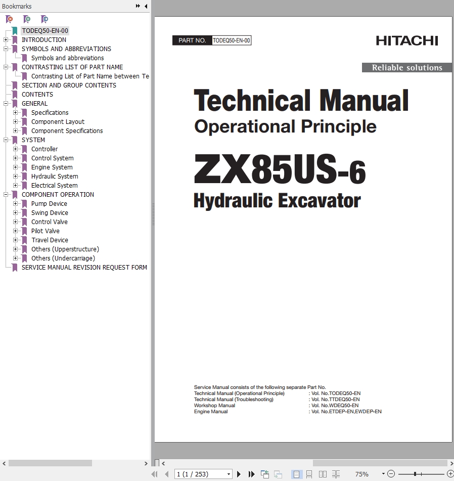 Hitachi ZX85US-6 Technical Manual TODEQ50-EN-00