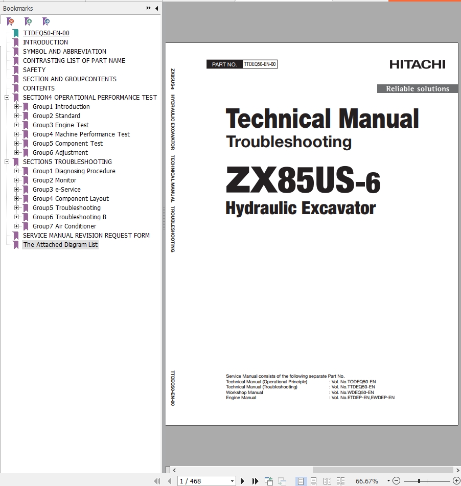 The Bookmarks of Hitachi ZX85US-6 Hydraulic Excavator Technical Manual(Troubleshooting):