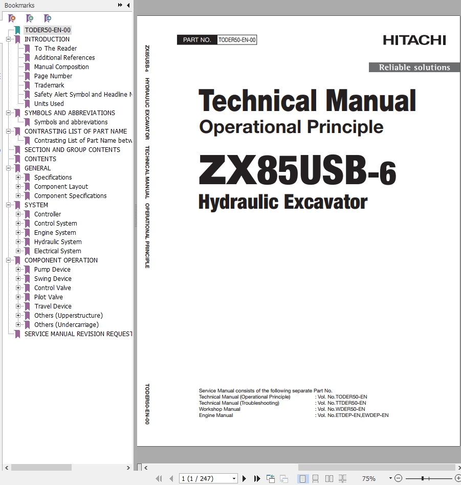 Hitachi ZX85USB-6 Technical Manual TODER50-EN-00