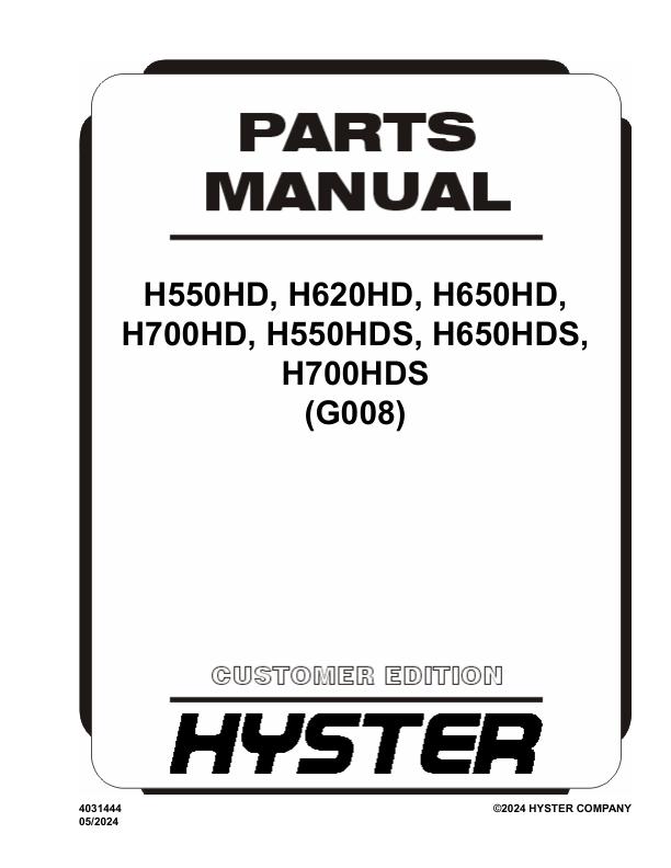 Hyster G008 H550HD to H700HDS Parts Catalog 4031444 05-2024