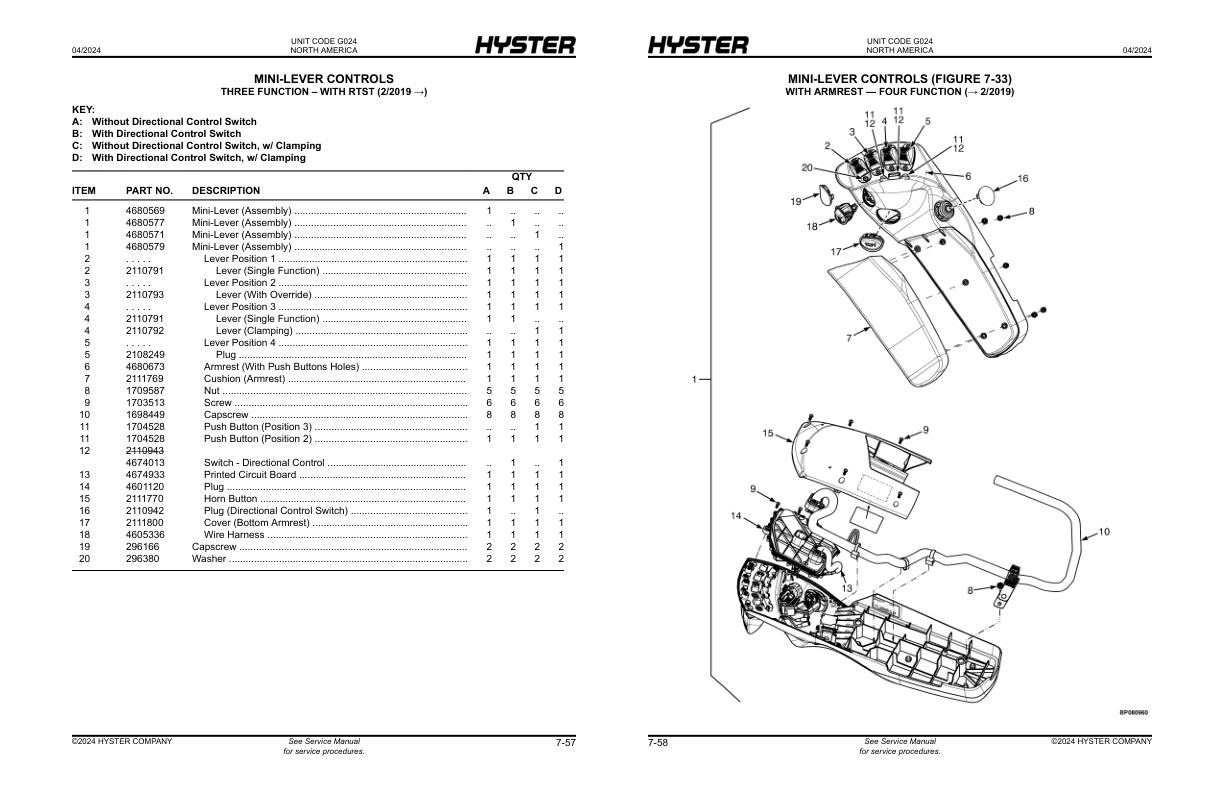 HAND LEVERS FOUR FUNCTION - WITHOUT DETENTED LEVERS (3/2019 →)