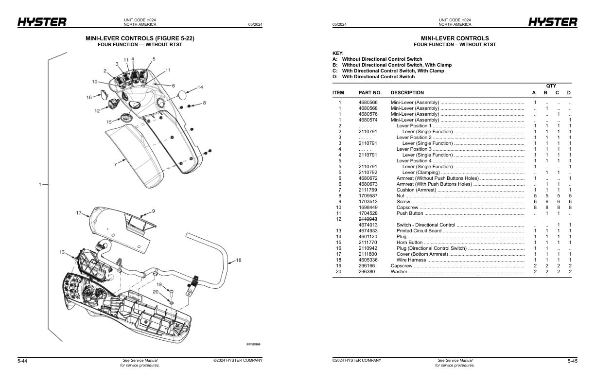 Hyster H024 S135FT S155FT Parts Catalog 4321082 05-2024