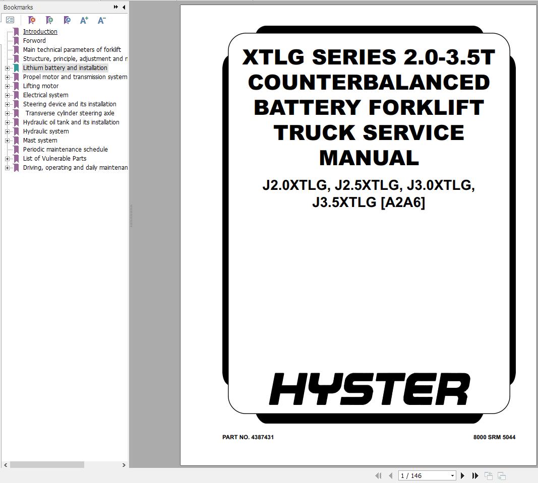 Hyster J2.0XTLG J2.5XTLG J3.0XTLG J3.5XTLG Europe (A2A6) Service Manual 2025