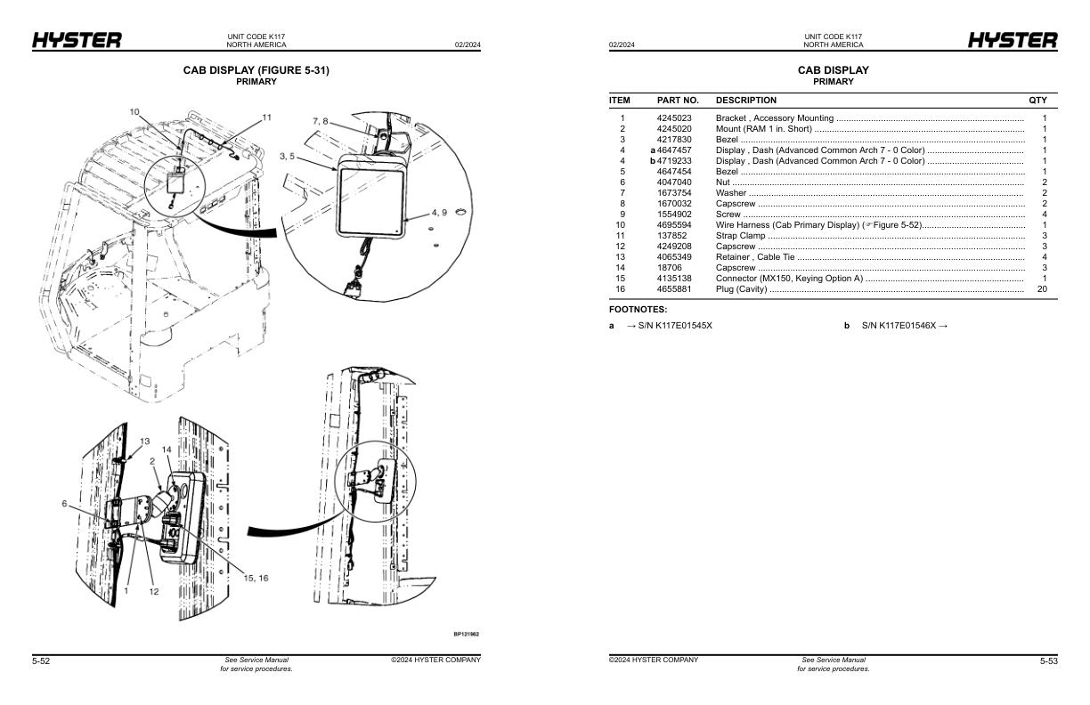 Hyster K117 H1050XD-CH H1150XD-CH Parts Catalog 4278429 02-2024