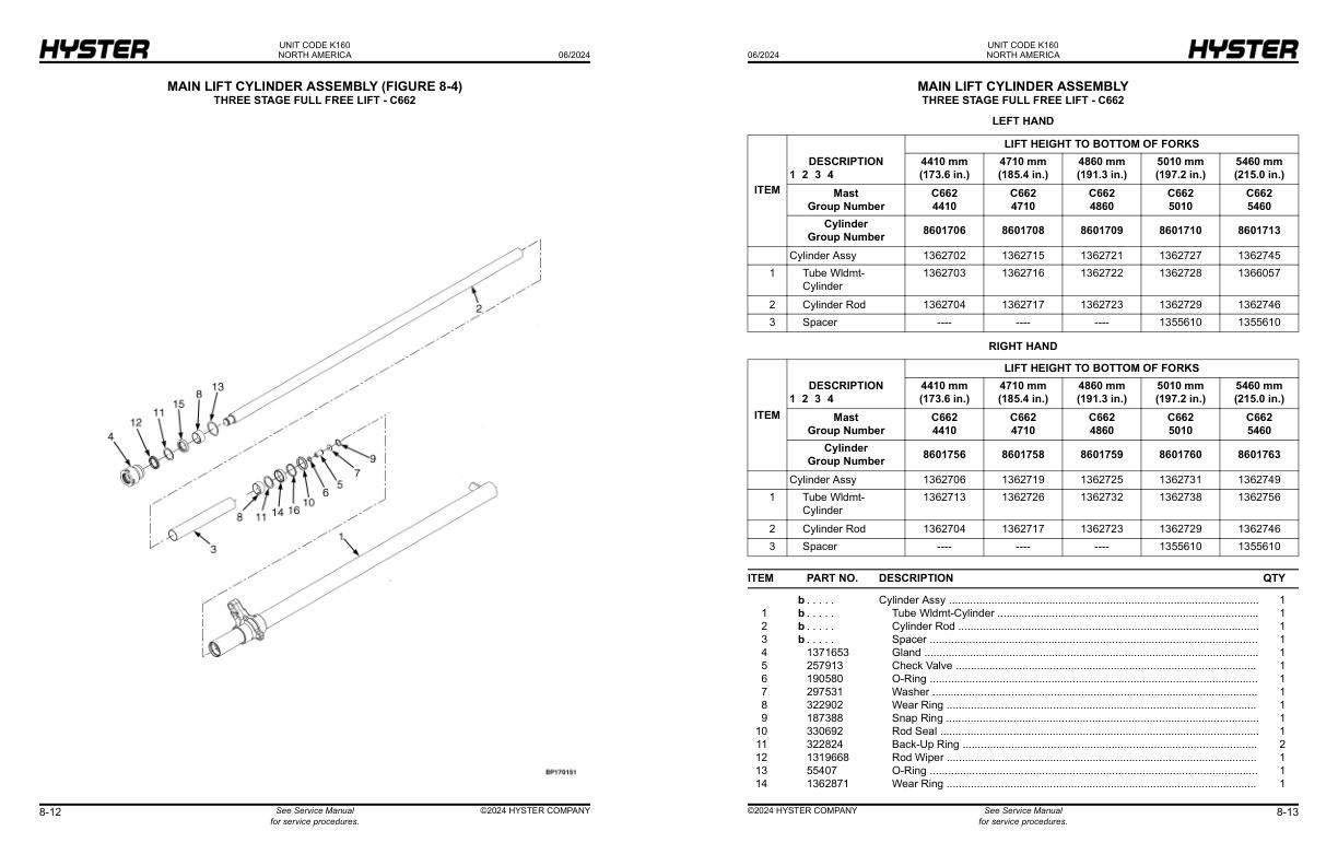 MAIN LIFT CYLINDER LH TWO STAGE FULL FREE LIFT - C663