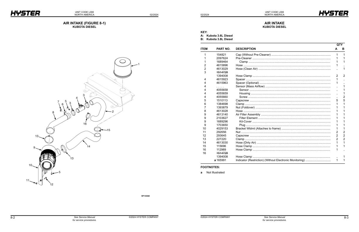 Hyster L006 H135FT H155FT Parts Catalog 4139158 02-2024