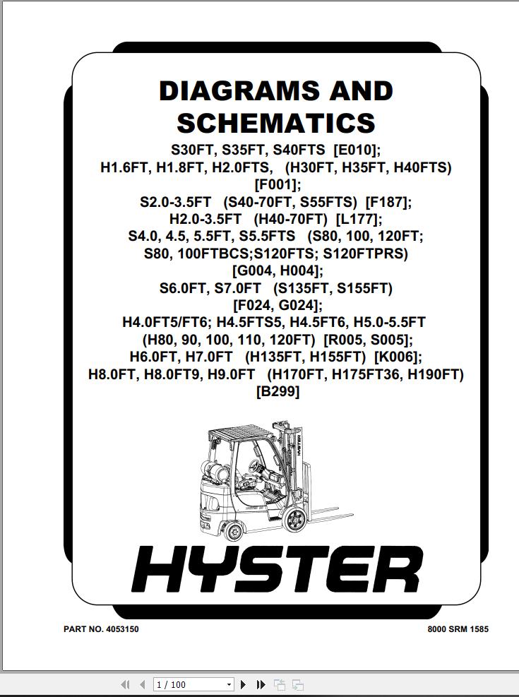 Hyster S30F to H9.0FT Diagram And Schematics 4053150