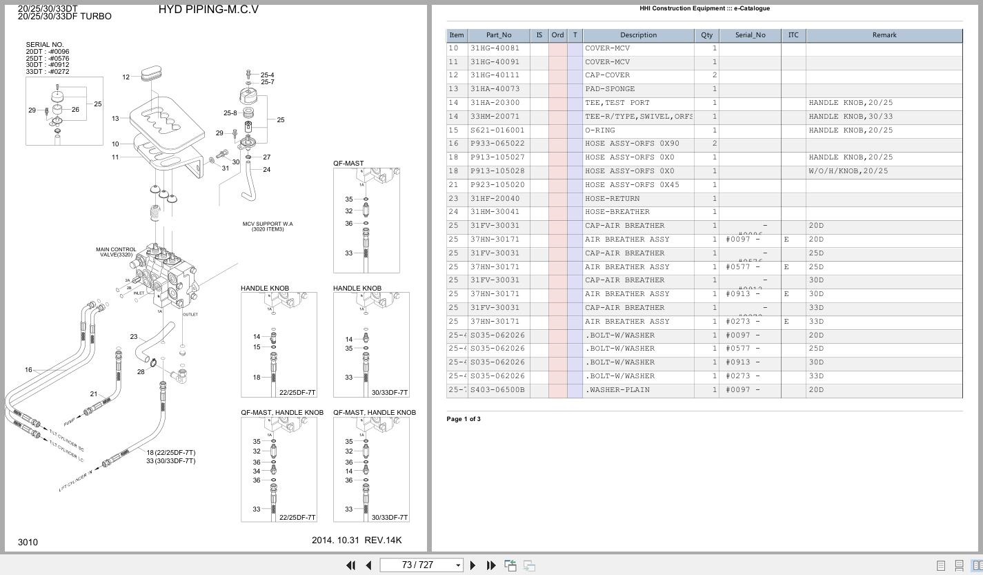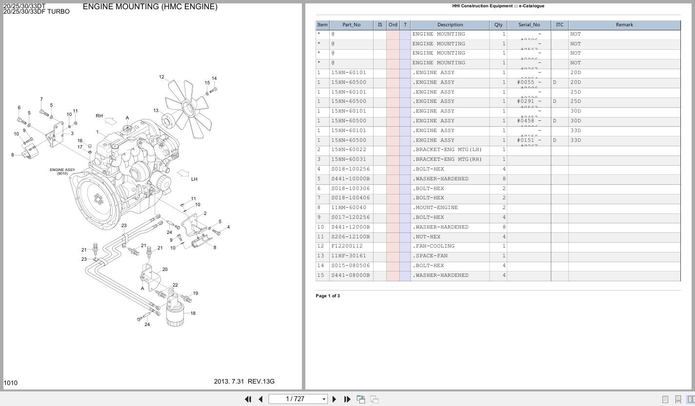 Hyundai Diesel 7 Series 20 25 30 33DT-7 Spare Parts Catalog