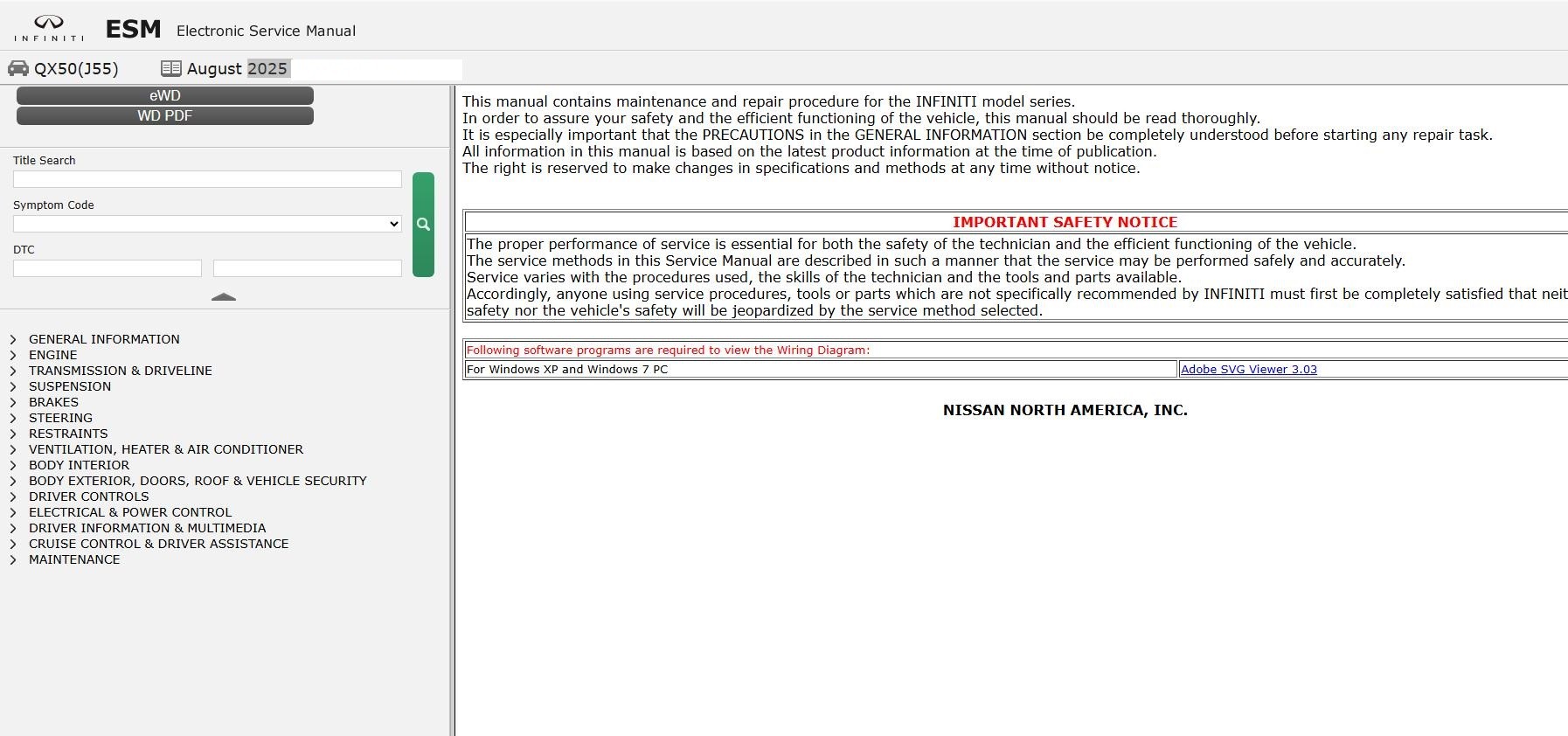 Infiniti QX50 J55 2019 - 2025 Automotive Service Manual Wiring Diagrams