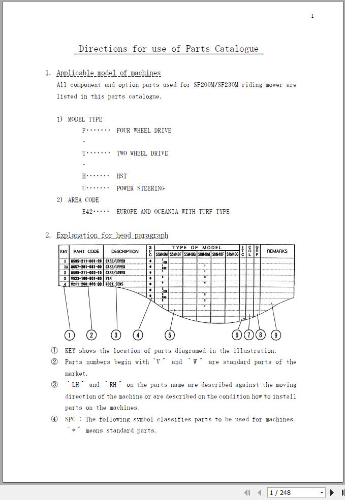 Iseki SF200M SF230M Parts Catalog 1689-097-120-10