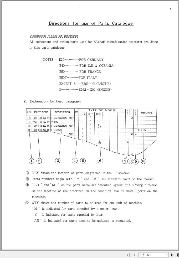 Iseki SG153H Parts Catalog 1608-097-100-00