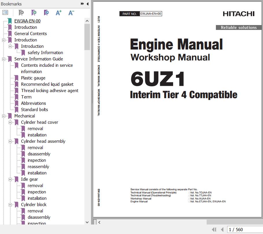 Isuzu 6UZ1 Interim Tier 4 Compatible Workshop Manual EWJAA-EN-00 560 Pages