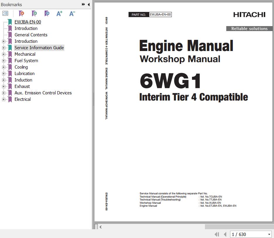 Isuzu 6WG1 Interim Tier 4 Compatible Workshop Manual EWJBA-EN-00 630 Pages
