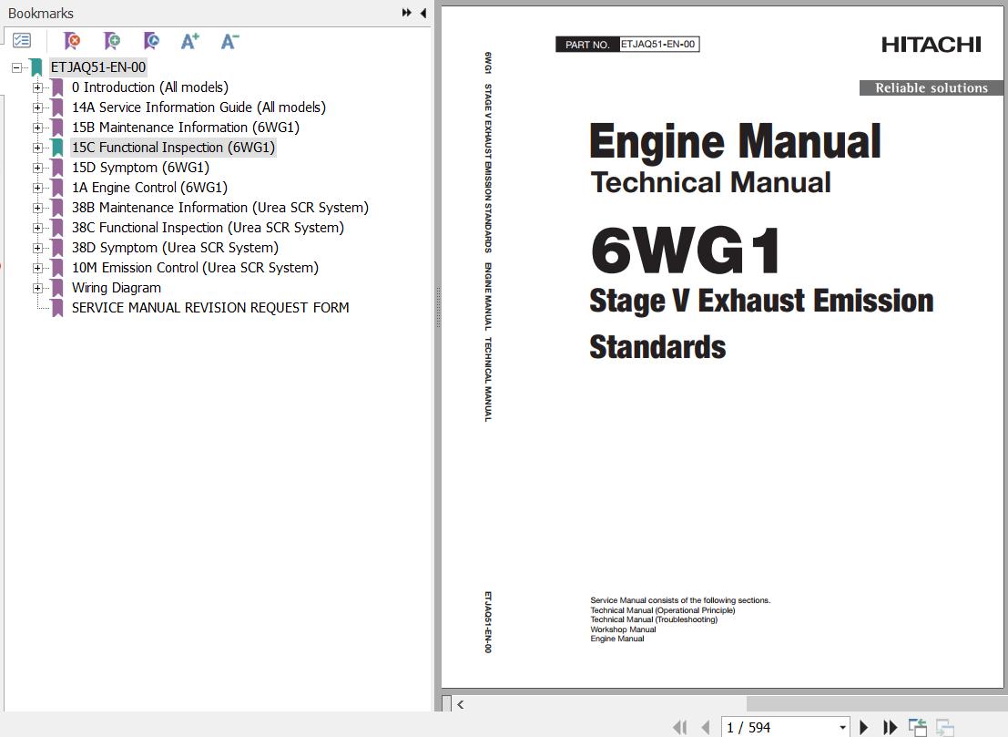 The Bookmarks of Isuzu 6WG1 Stage V Exhaust Emission Standards Technical Manual: