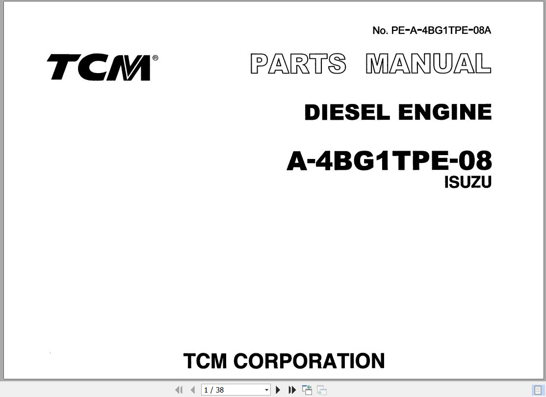 Isuzu Engine A-4BG1TPE-08 For TCM FA35D FA40D Parts Manual PE-A-4BG1TPE-08A
