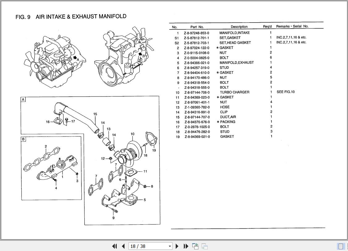 The Bookmark of Isuzu Engine A-4BG1TPE-08 Parts Manual: