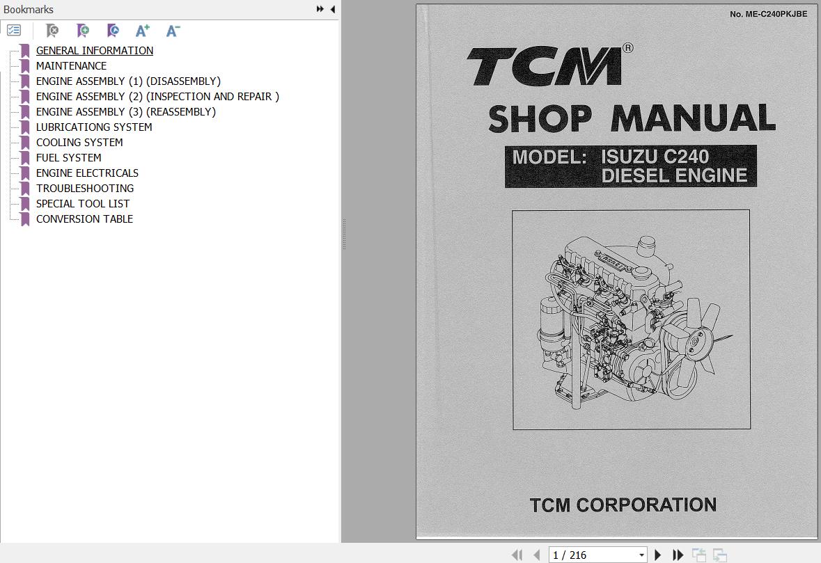 Isuzu Engine C240 For TCM FHD15Z7 To FCD30Z7 Shop Manual ME-C240PKJBE
