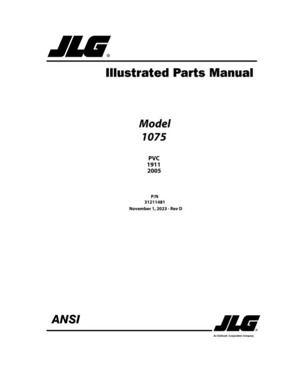 JLG 1075 PVC 1911 2005 Parts Manual 31211481