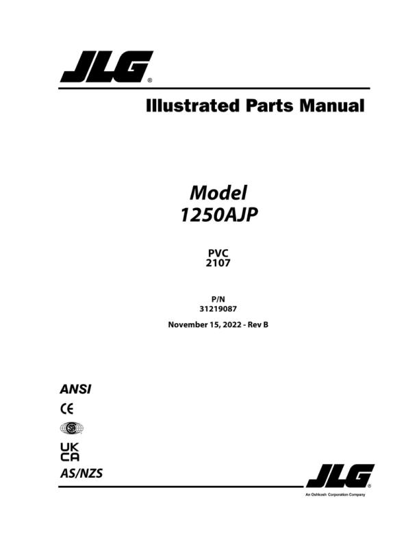 JLG 1250AJP PVC 2107 Parts Manual 31219087